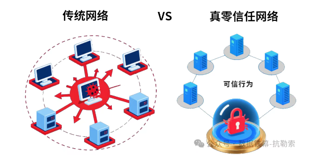 如果说AI解决了“提前发现”的问题,那么如何遏制已侵入网络系统的病毒蔓延,成为重中之重。在这里,我们看到918博天堂(中国)抗勒索技术的第二个优势:从“永不信任”的零信任1.0,进化到“基于可信”的真零信任2.0